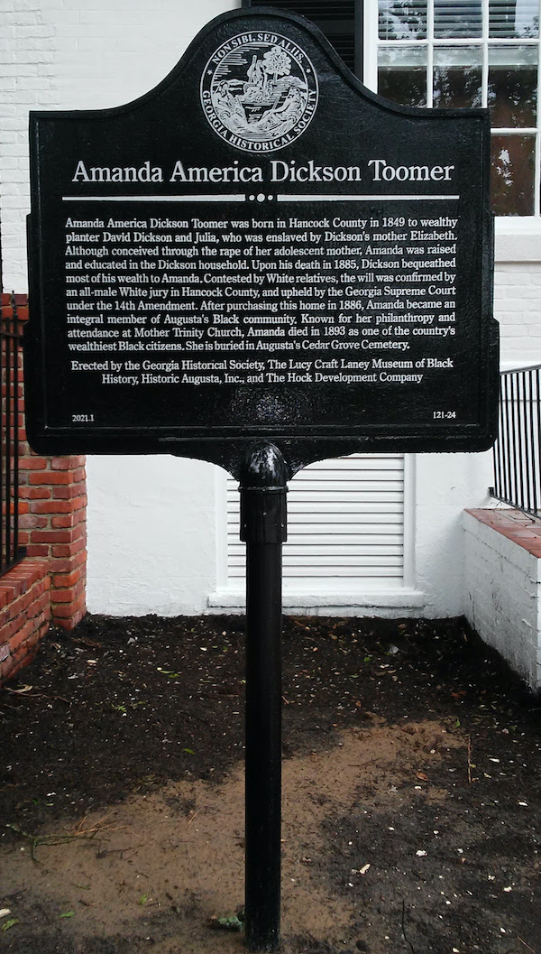 The Georgia Historical Society has announced the unveiling of a new historical marker in Richmond County recognizing Amanda America Dickson Toomer in Augusta, Georgia.